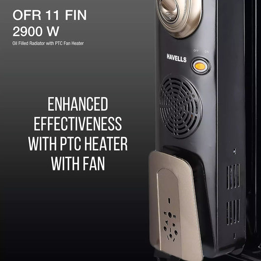 Havells OFR 11 Fin OFR 2900 Watt with 3 Heat Setting DUO Tech PTC & OFR (Black)