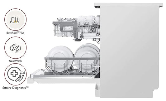 LG 14 Place Settings Inverter Direct Drive Wi-Fi Free Standing Dishwasher (DFB424FW, White, Sparkling Dishes - Less water spots, Clean from every angles & Easy loading and maximum flexibility)