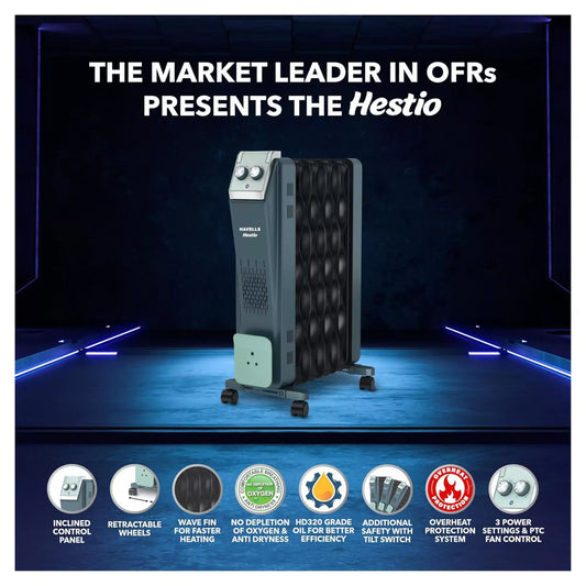 Havells 11 Fin Hestio Straight Fin OFR , 2900 Watt (Pack of 1, Black)