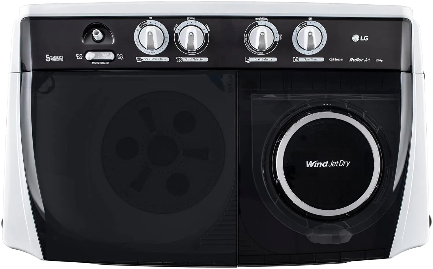 LG 9.5 kg 5 Star Wind jet dry Semi-Automatic Top Load Washing Machine (P955ASGAZ, Dark Gray, Roller Jet Pulsator)